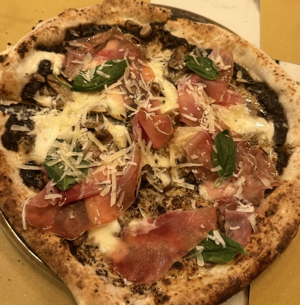 Poi arriva la Tartufo Spavaldo: crema di tartufo, fiordilatte, funghi freschi e crudo stagionato. Un insieme ricco, ma ben costruito, dove ogni elemento trova spazio senza confondersi. Il nome non è casuale: c’è carattere, ma anche equilibrio.
