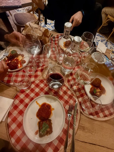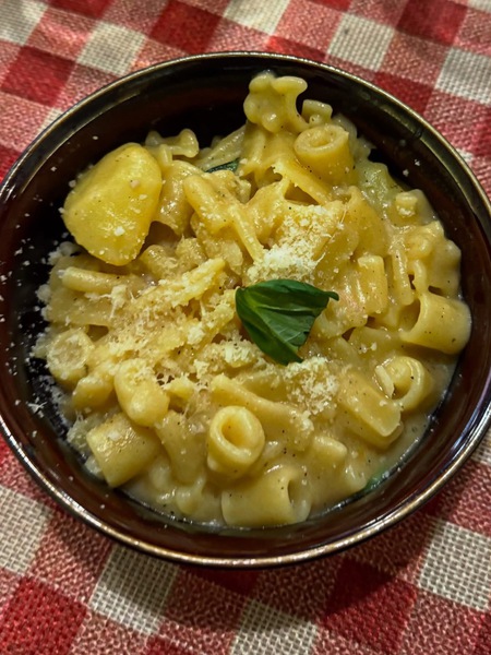 Come da memoria di famiglia: pasta patate e provola cremosa e intensa, parmigiana ricca e avvolgente, polpette che sanno di domenica, di casa, di gesti
